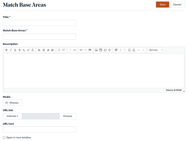 Je kunt nu een nieuwe match aanmaken door op de knop “Add new Area” te klikken